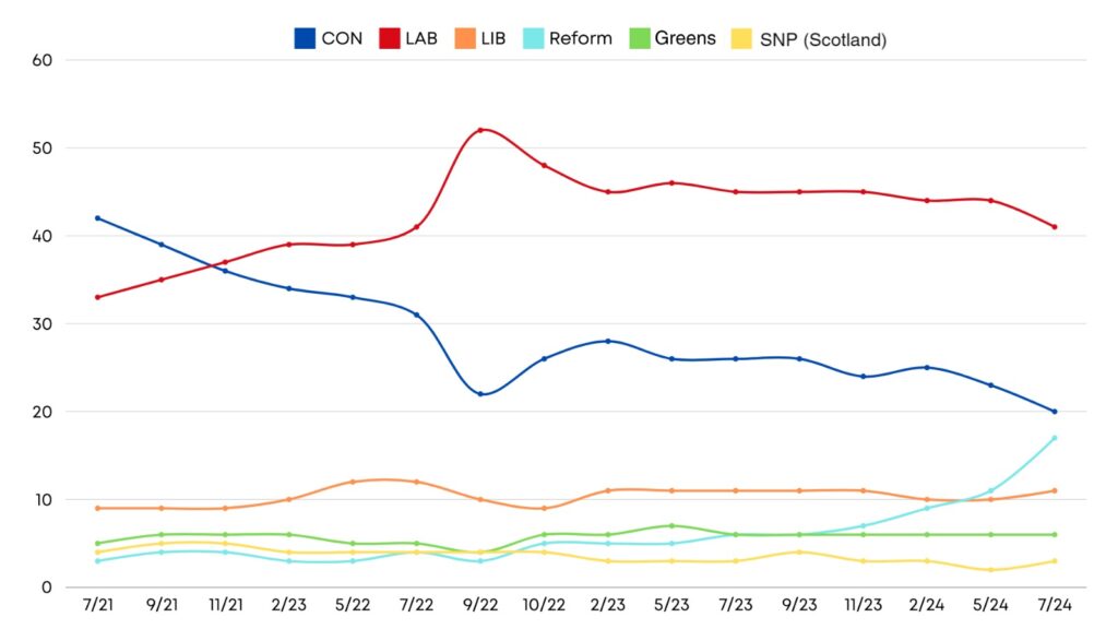 However, the main architect of this disaster is not Labour but Nigel Farage. The founding father of Brexit, with his Reform UK party polling at 17%, is set to further erode Conservative support (in 2019, Farage and Johnson had made a deal to withdraw Reform UK candidates in favor of the Tories).